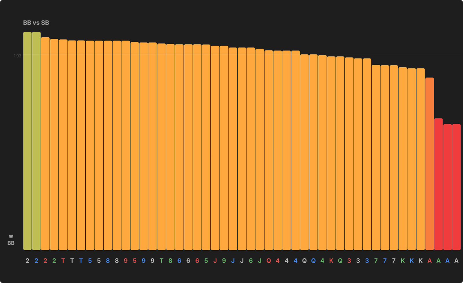 Notice how the cards that are best for the BB after a checked-through flop interact with the draws that the SB most frequently checks back on the flop.