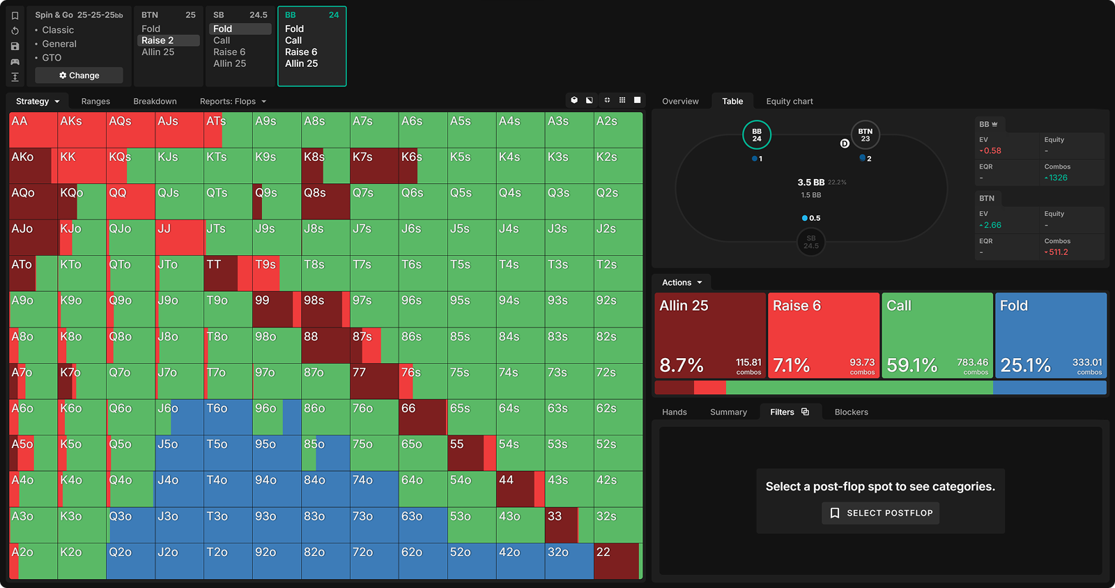 For this spot, we min-open the BTN 3-handed at 25bb effective, which the SB folds to and the BB calls.
