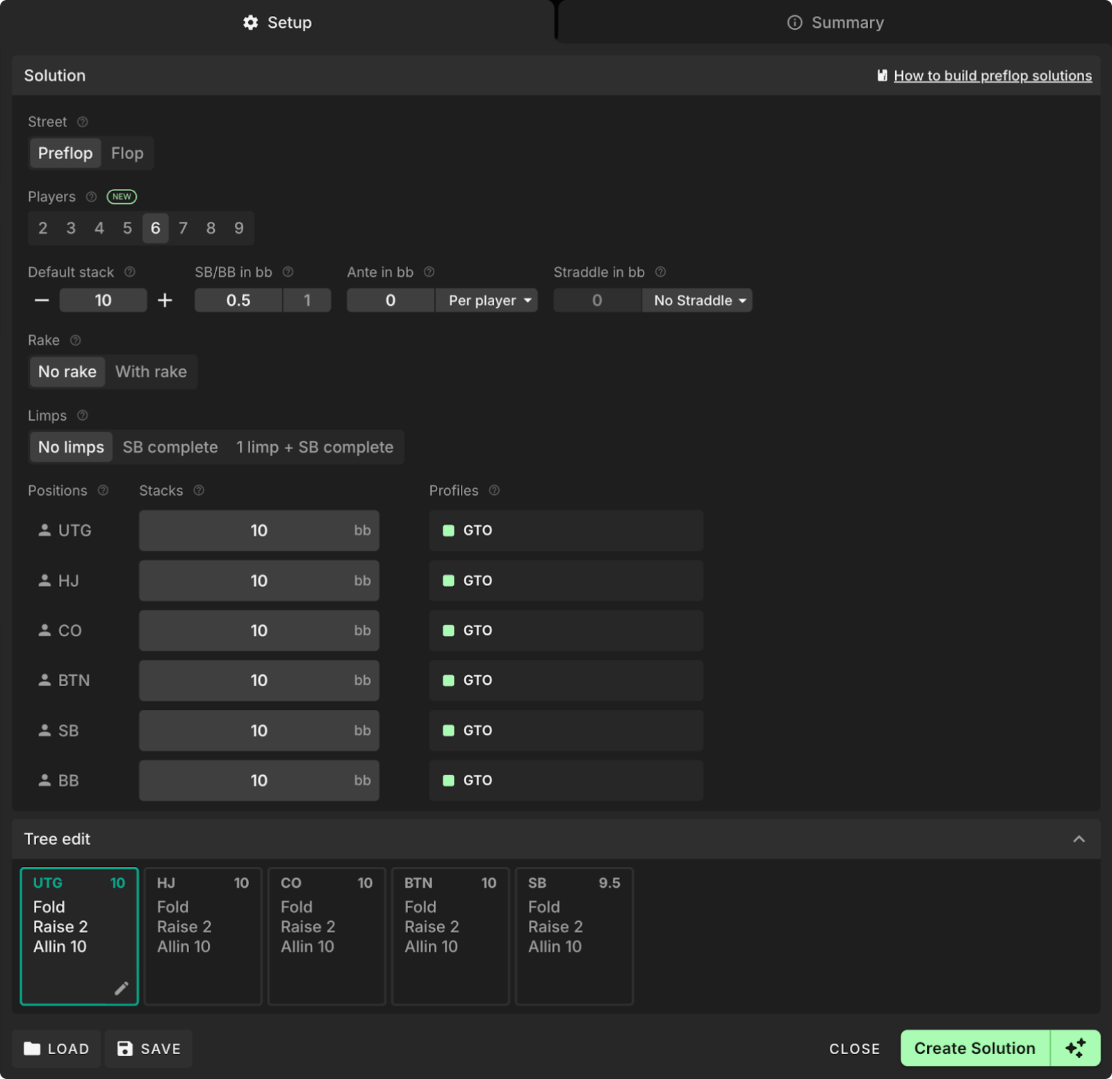 You can access the preflop solver in Study mode by creating a new solution and selecting ‘Preflop’.