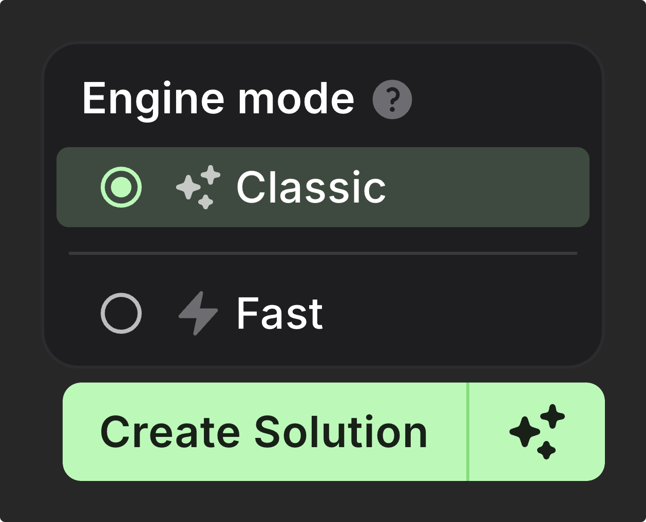 To make solving massive trees practical, we also introduced two engine modes: