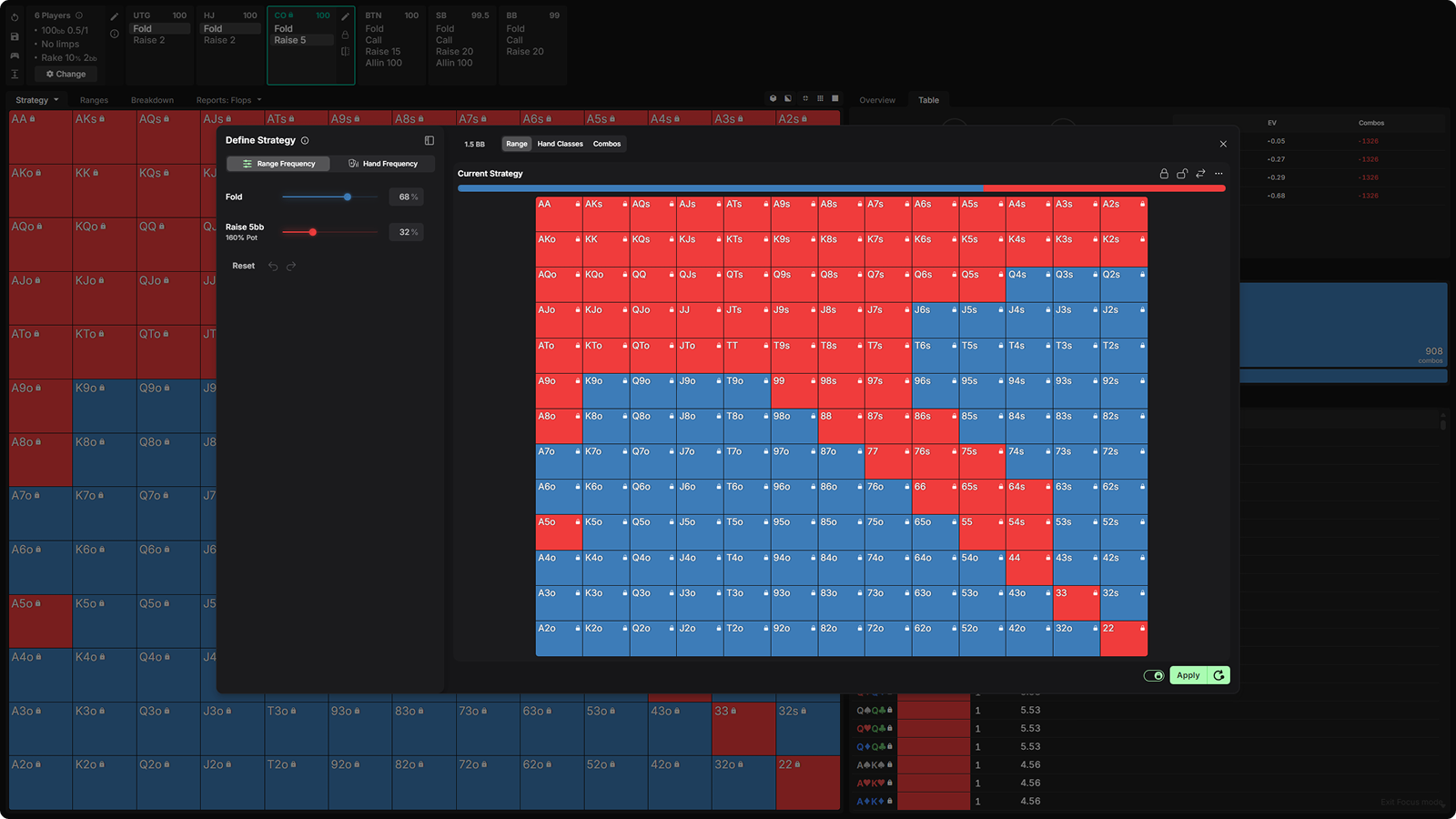 - Custom Stack Depths – Input exact chip stacks for every player at the table and study asymmetric stack dynamics that standard charts completely ignore.