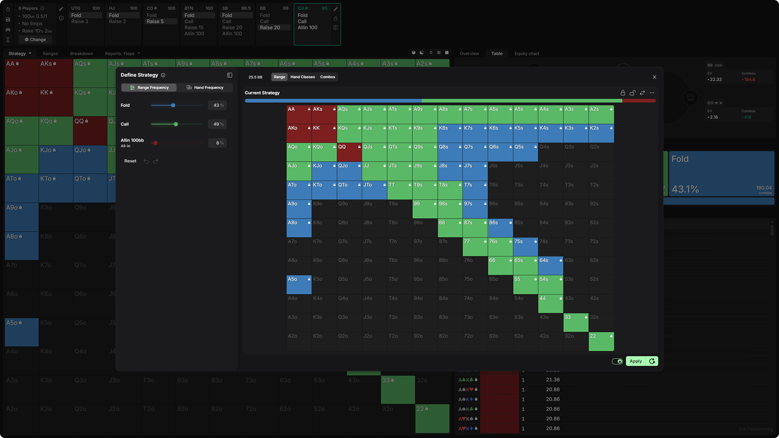 So we nodelock the Cutoff to a wide live-style opening range, and lock in a realistic response to 3-bets: