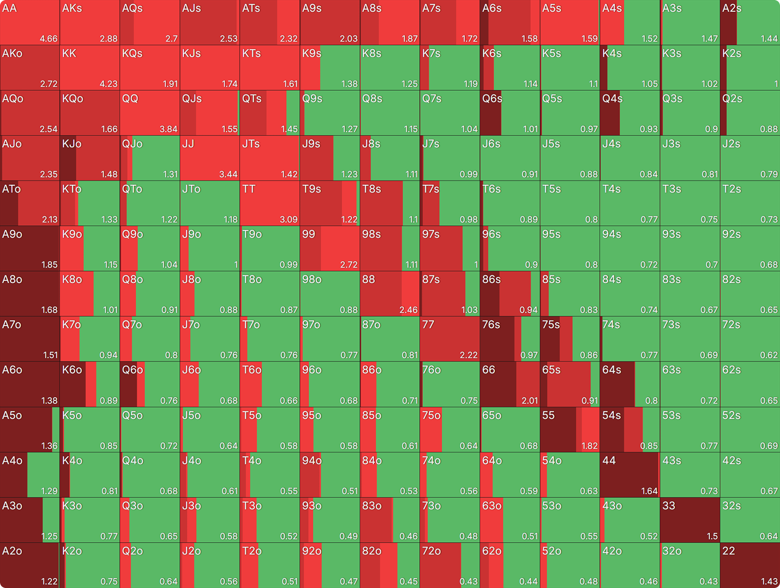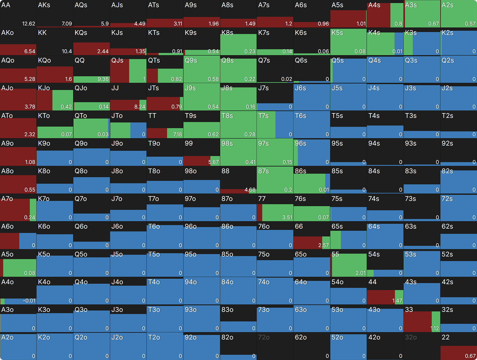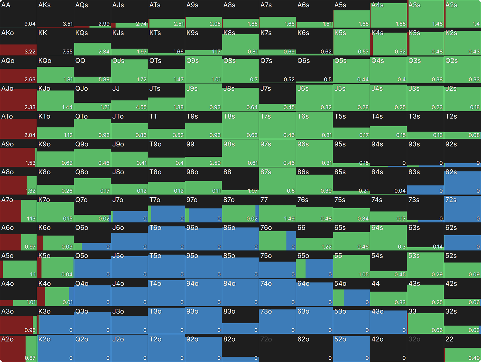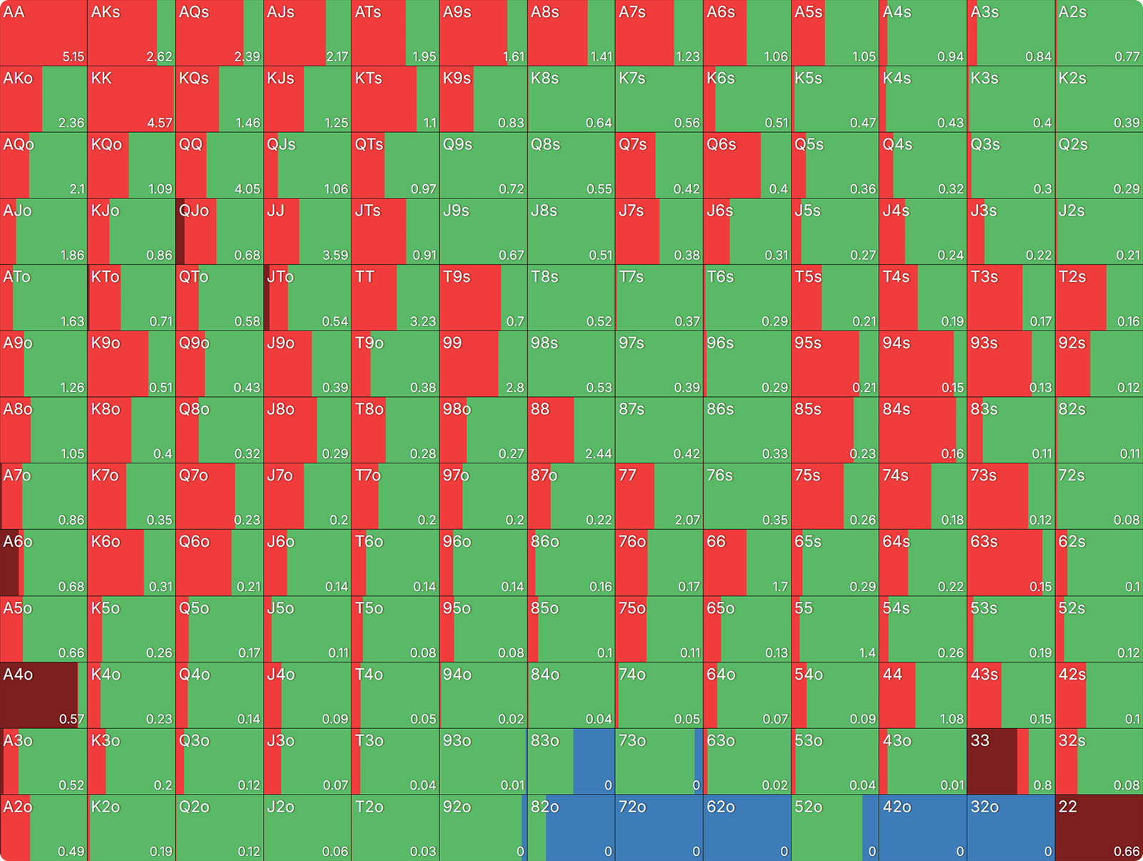 Let’s explore some deviations you may encounter from the SB due to the addition of a significant all-in range in the SB baseline strategy.