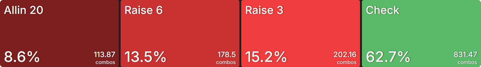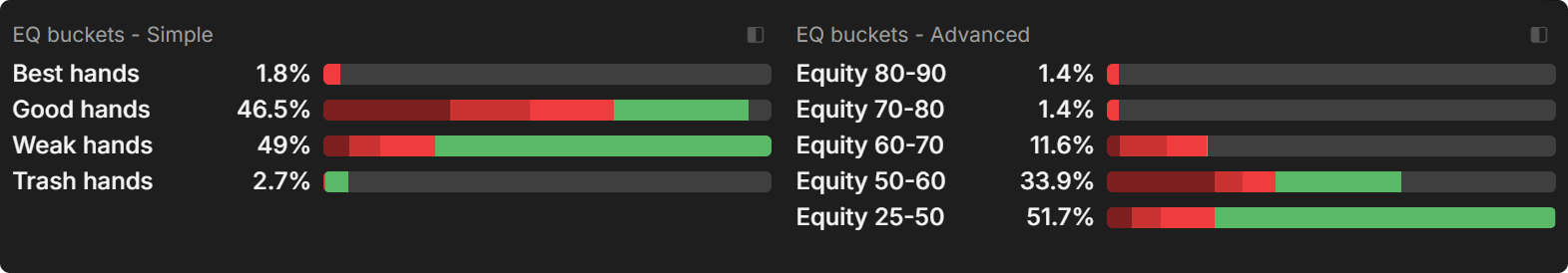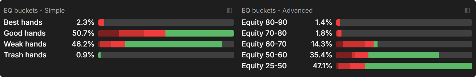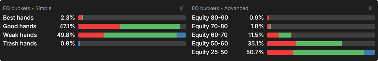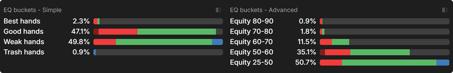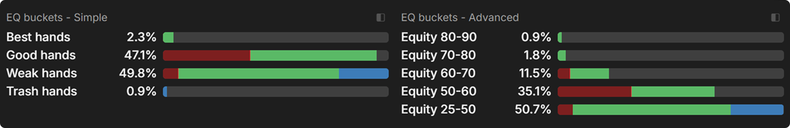 Again, by inspecting the equity buckets for the SB strategy, we can gain a deeper understanding of the role each hand category fulfills.