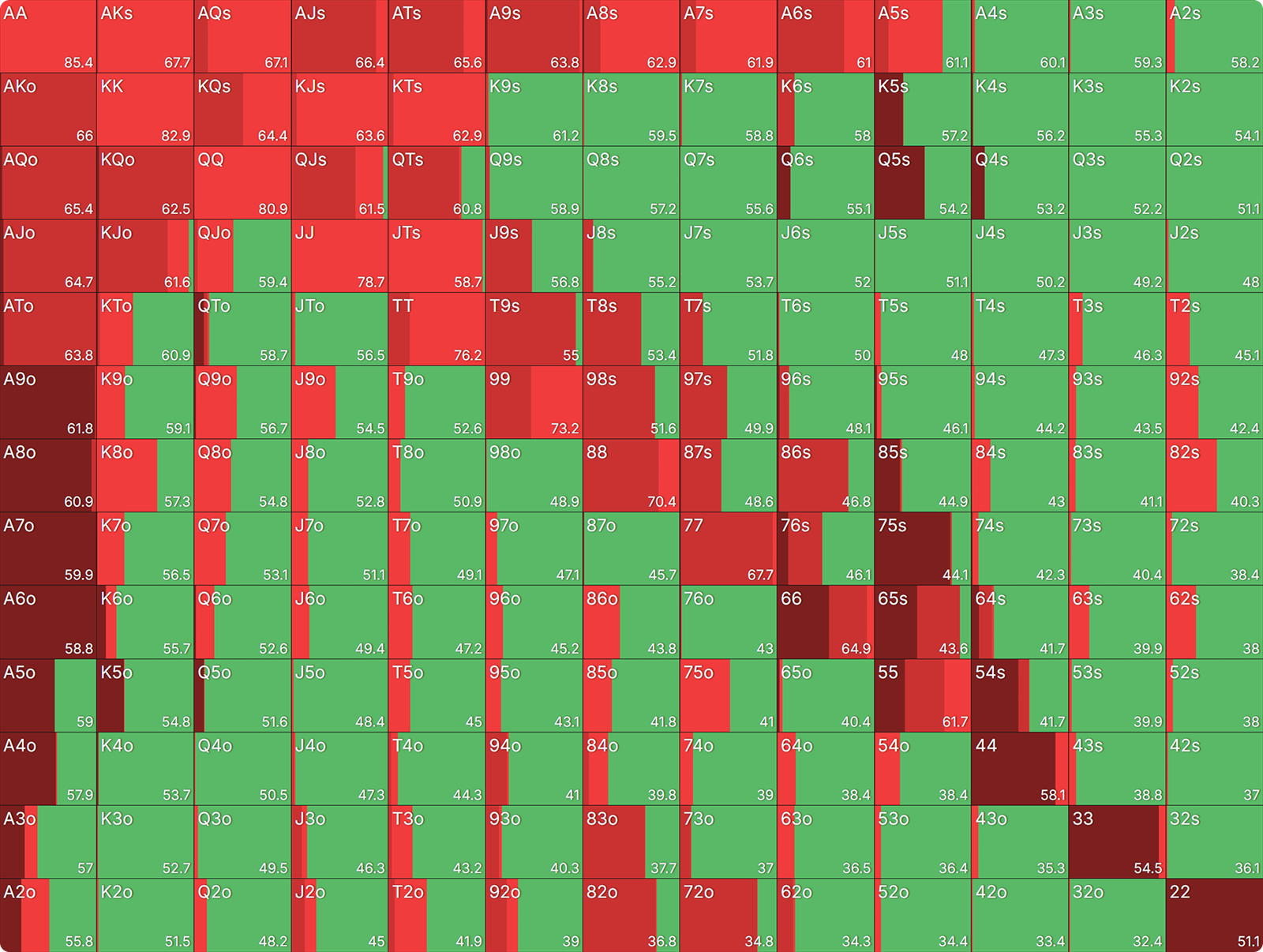 When we reach single-digit stack depths, going all-in is often the baseline play. Failure to master these all-in ranges can subsequently leave limping ranges heavily exposed to exploitation. Underestimating the importance of shallow-stacked preflop play can be detrimental to your HU win rates.