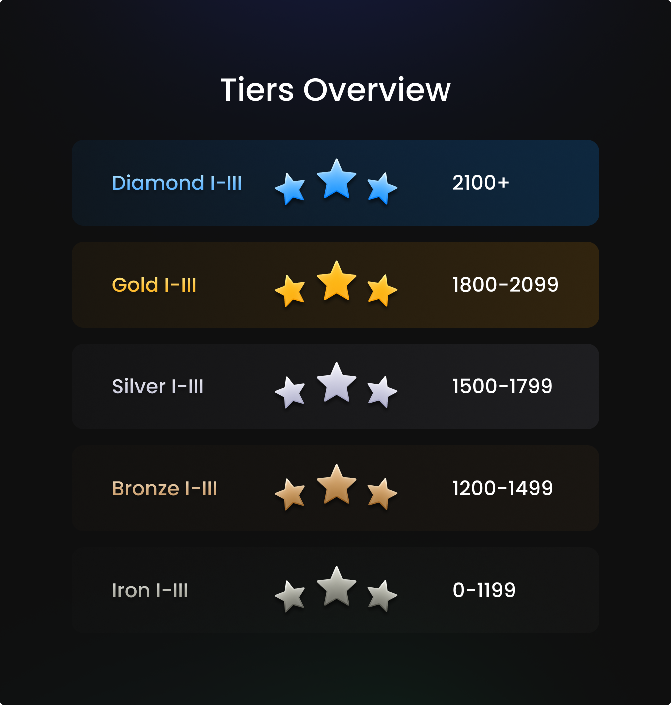 We’ve introduced skill-based ranks, each with three divisions (I, II, III):