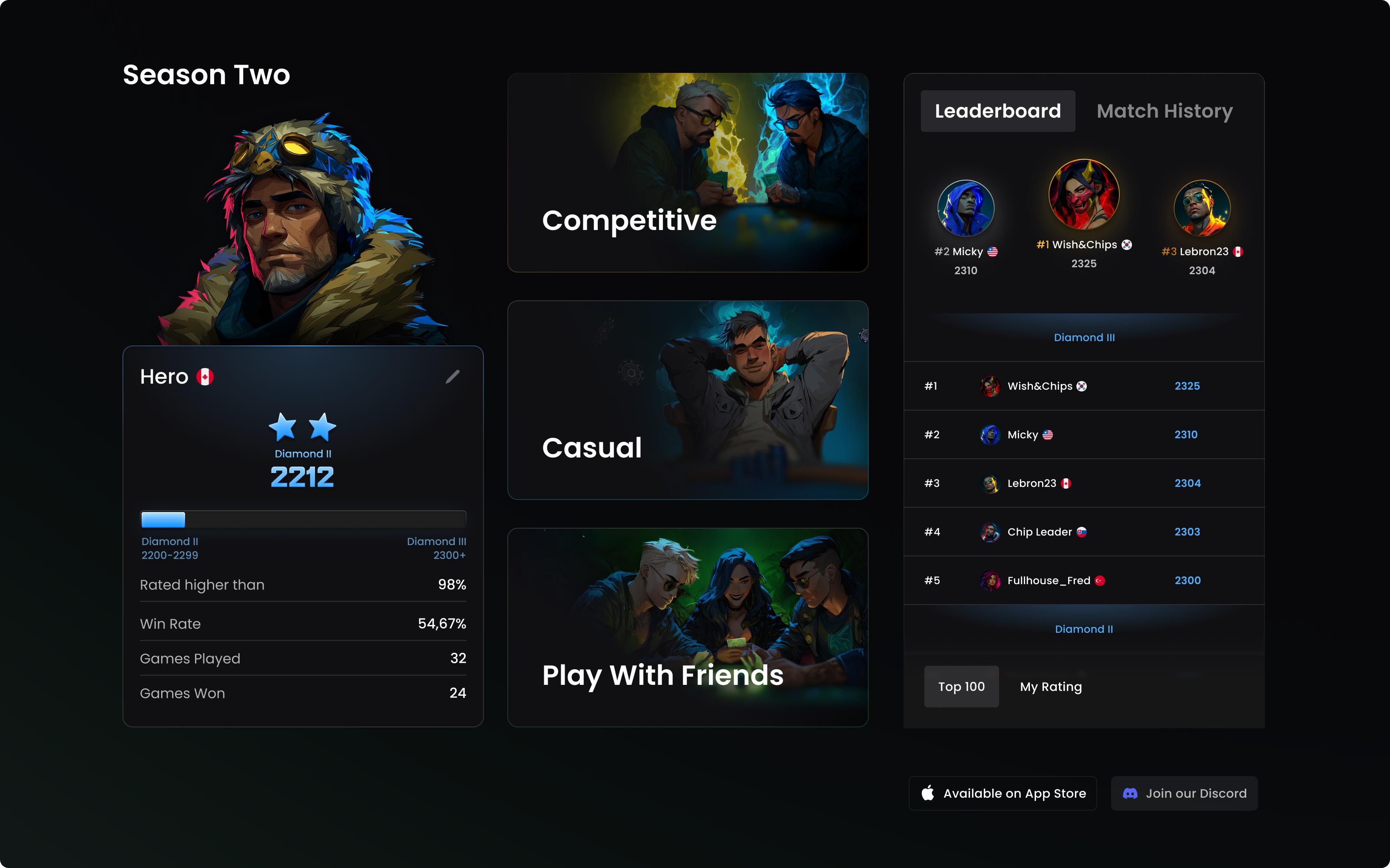 For Season Two, we’re building on what you loved about competitive mode and taking PokerArena even further. Here’s what’s new:
