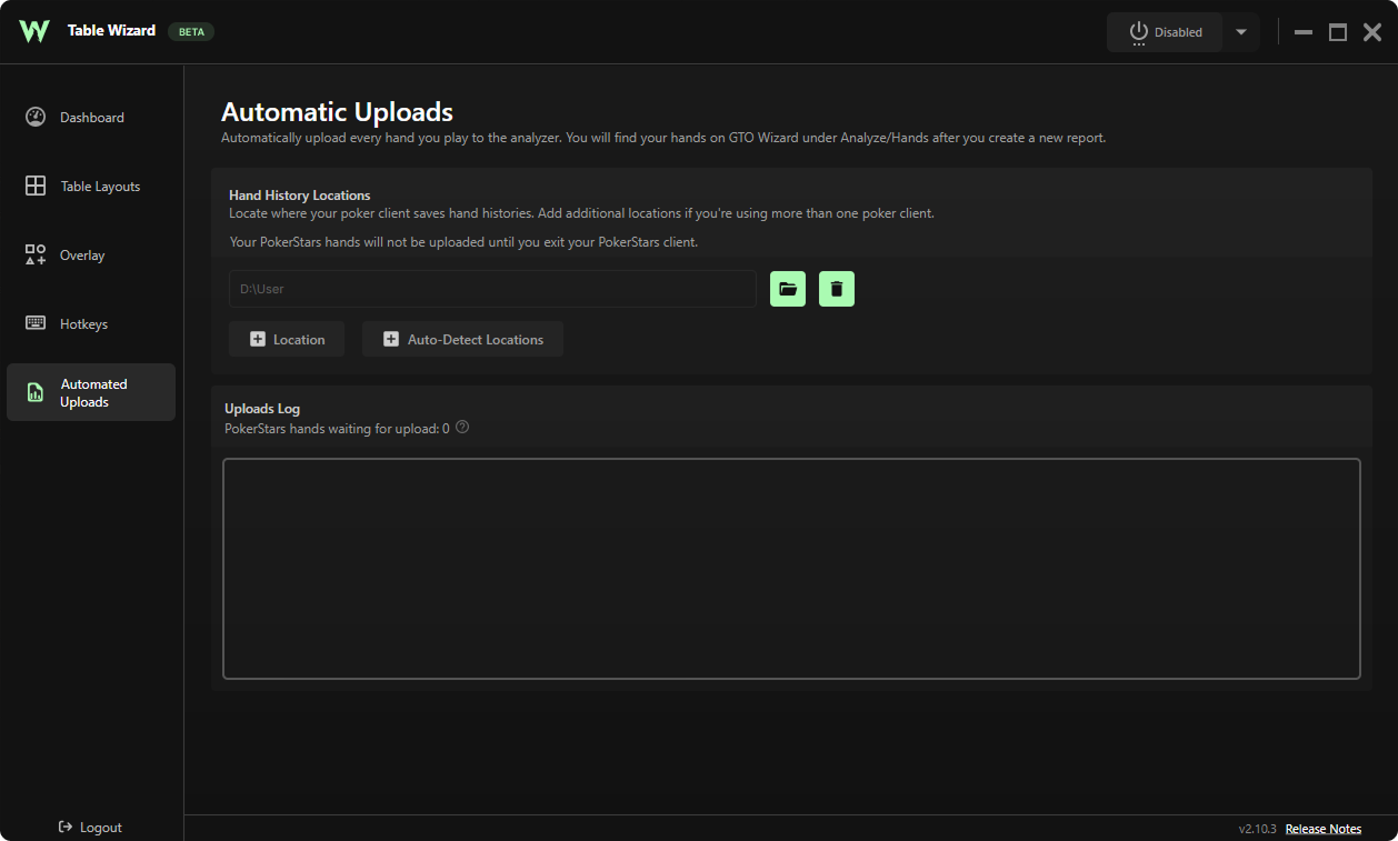 Table Wizard is our free table manager. You get clean layouts, custom bet sizes, hotkeys, and overlays. Turn on Auto-Upload and your hands queue into the Analyzer as you play. When the session ends, open Analyzer and start reviewing. It’s the easiest way to improve!